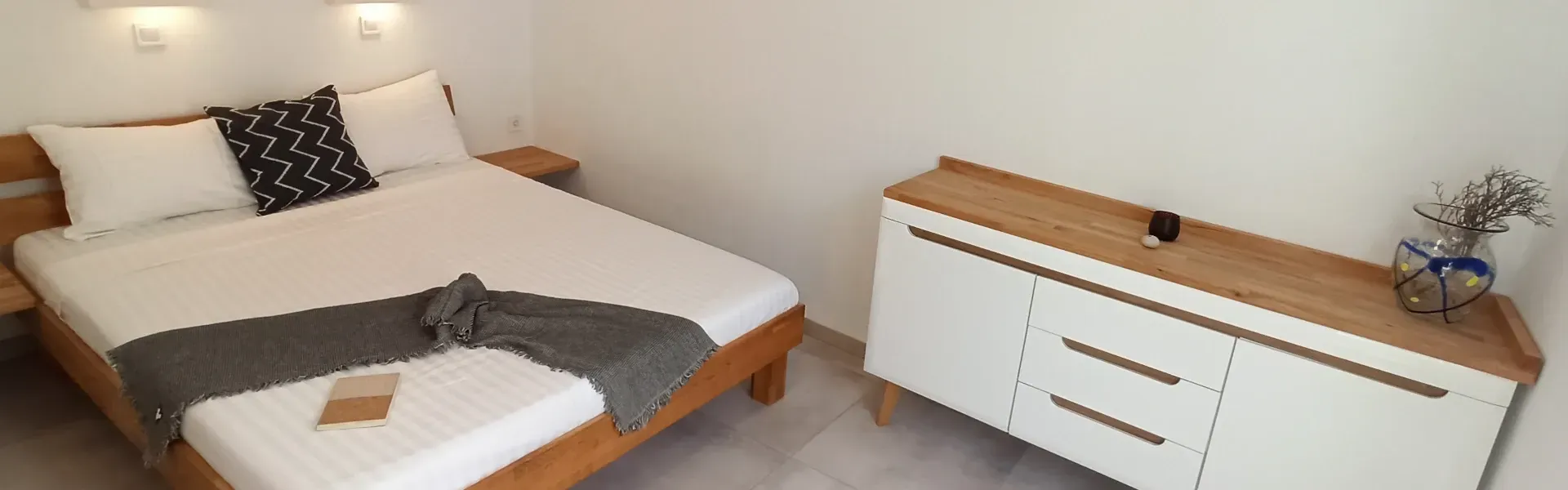 Apartament znajduje się na pierwszym piętrze tradycyjnego greckiego domu stojacego przy bocznej uliczce zaledwie 1 minutę pieszo od brzegu morza i lokalnych barów i restauracji oraz 3-5 minut pieszo do sklepów i centrum miasta. Oferuje wygodny pobyt dla par lub rodzin z maksymalnie 3 dzieci.